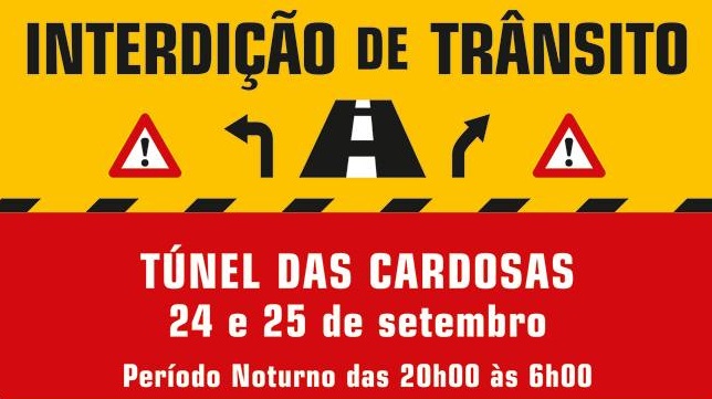Trânsito interdito num sentido no Túnel das Cardosas
