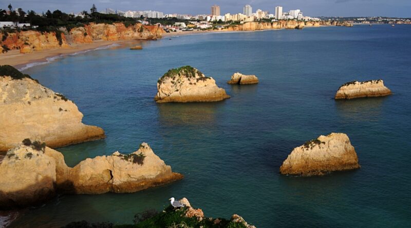 Temos à nossa frente toda orla costeira que vai desde a praia do Alemão, mais próxima, à Praia da Rocha, mais distante.