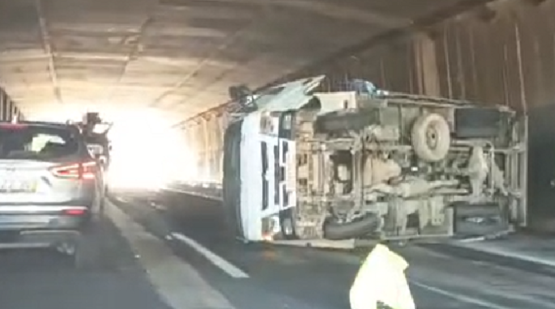 Um camião despistou-se na manhã desta 2ª feira, dia 3 de novembro, por volta das 9h00, em pleno túnel do Areeiro, na Via do Infante.