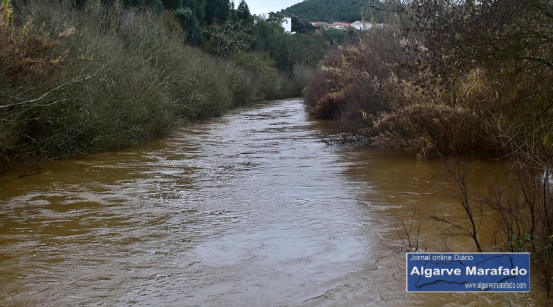 Em períodos de chuva intensa, o caudal aumenta significativamente e apresenta este aspeto ao passar por São Marcos da Serra, já em território algarvio.