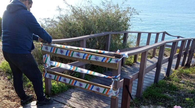 A escadaria de acesso à praia da Salema, no concelho de Vila do Bispo, encontra-se temporariamente interditada