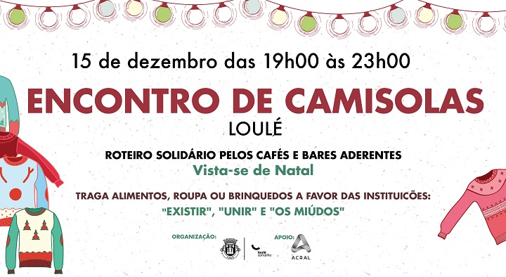 Read MoreA Câmara Municipal de Loulé, em parceria com a ACRAL e os bares e cafés da cidade de Loulé, promove esta Sexta-feira, 15 de Dezembro, das 19h00 às 23h00, a segunda edição do “Encontro de Camisolas de Natal”.